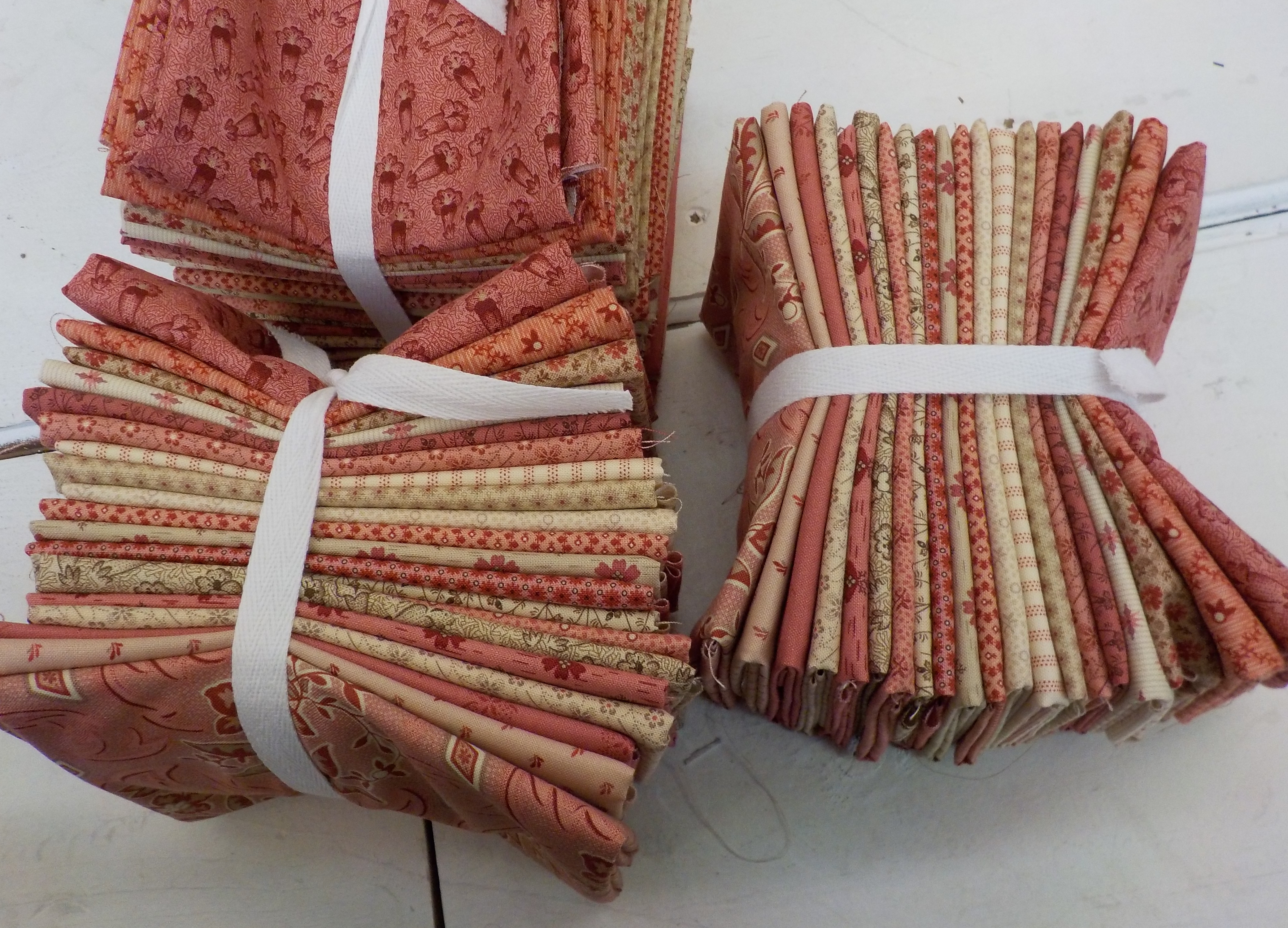 lots of double pinks, florals, stripes, and some tan with pink. perfect for stash building those hard to find pinks or whip up a pink and cream beauty…i’ve added a bundle to my civil war stash…which is growing by leaps and bounds as of late.