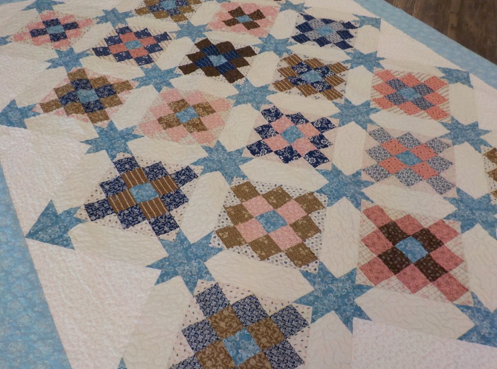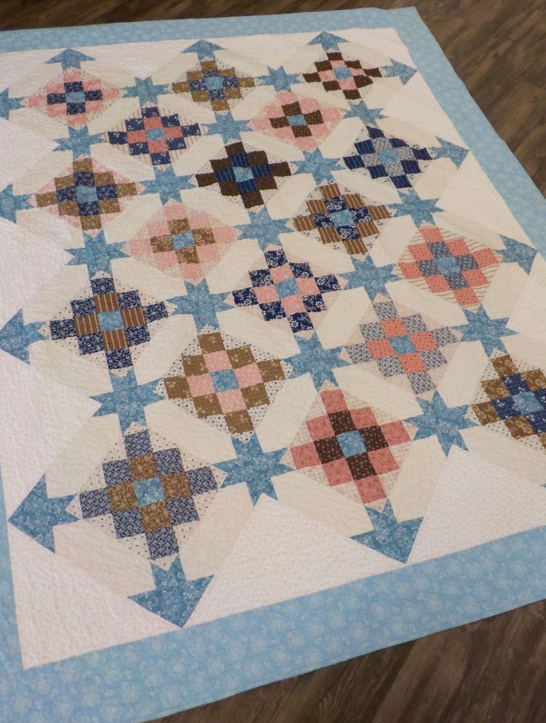 i love the soft denim added in as the block centers, cornerstones and border…that color adds the perfect something to this project!