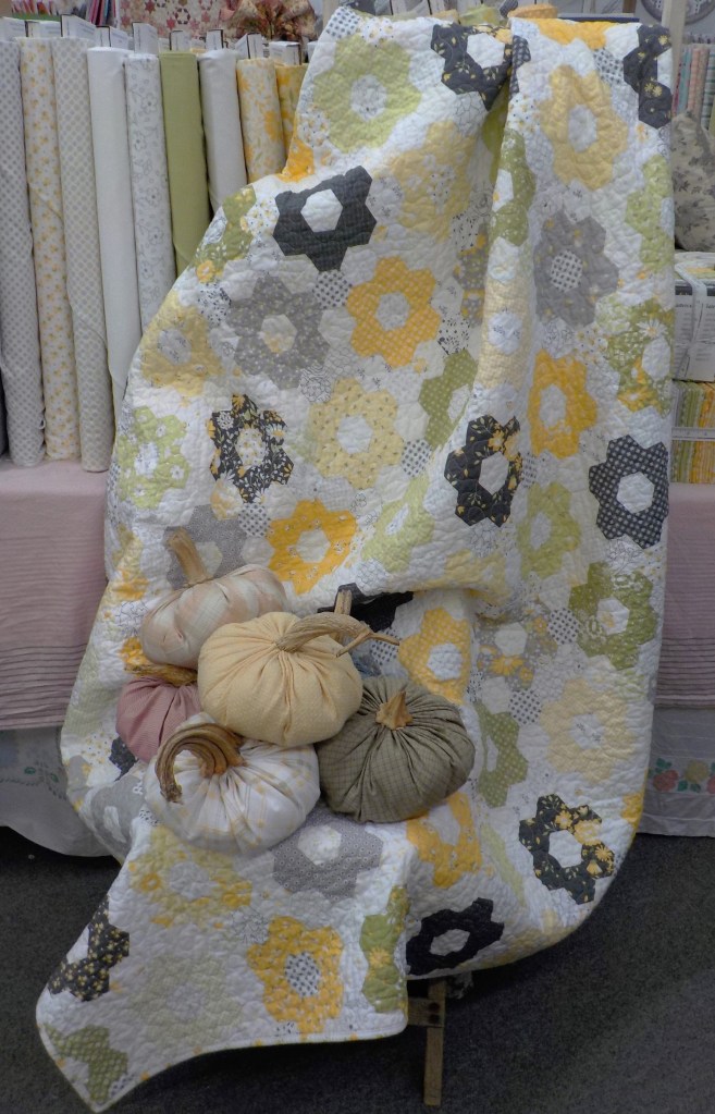 if you want to whip up our Buttercup Hexie Cheater Quilt…the kit is available now…you can find it here.