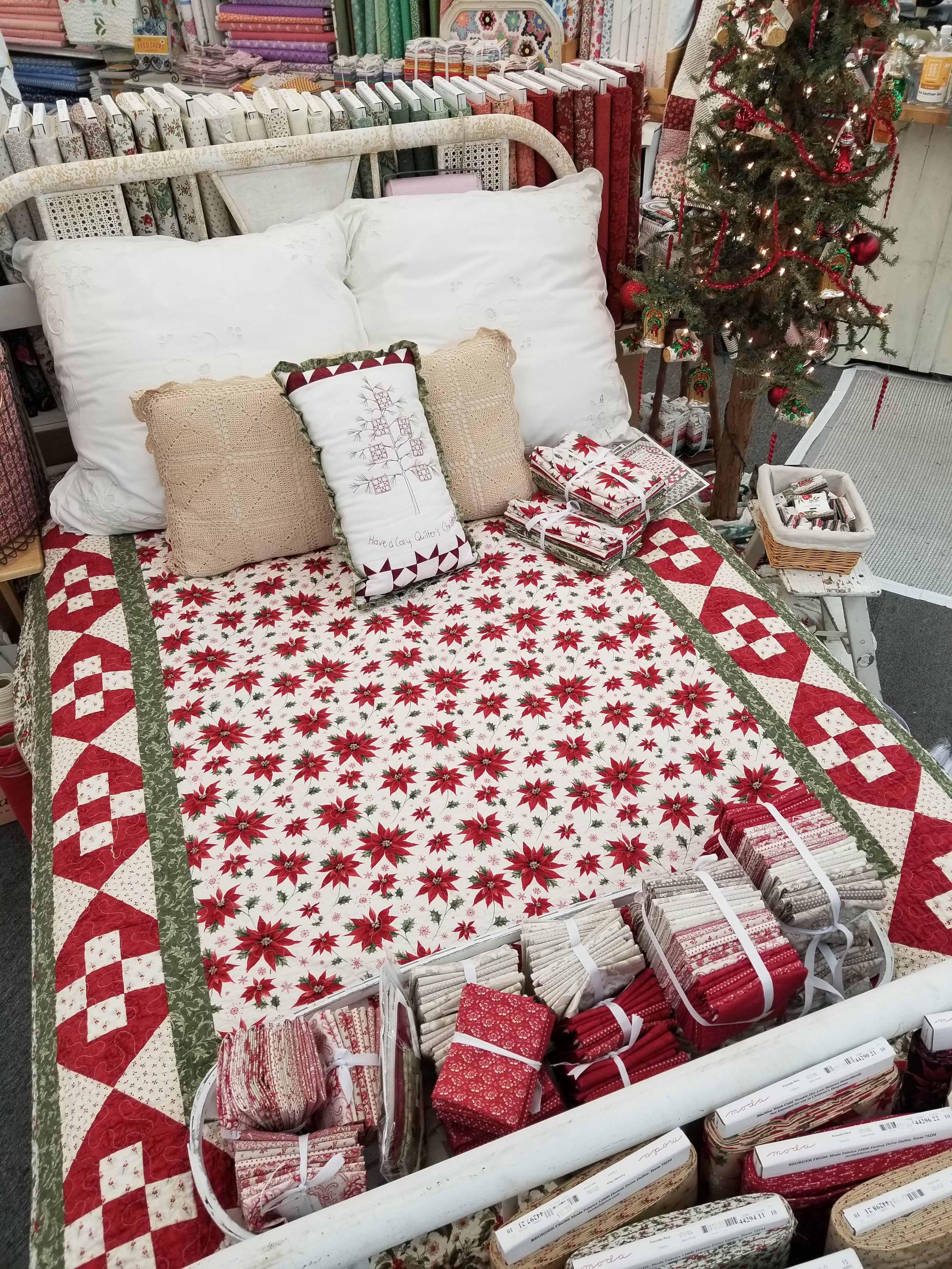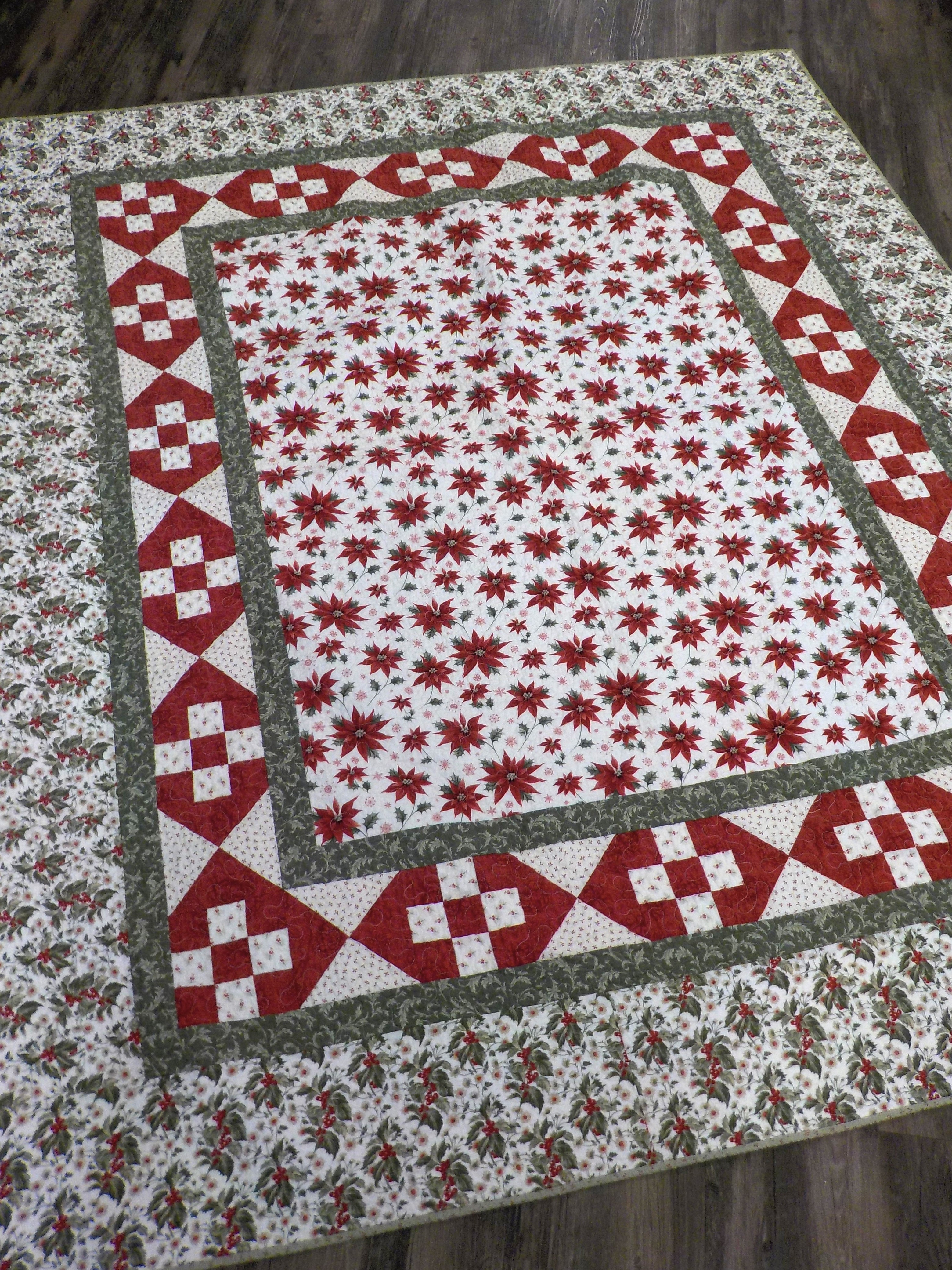 today i thought i would share Kandii Plaza featuring Poinsettia Plaza by 3 Sisters. This project is a revisit of a pattern we did long ago (Peppermint Candy was a circa 2015 pattern). we thought it was time for an upgrade…and what better collection then the newest Christmas collection by 3 Sisters.