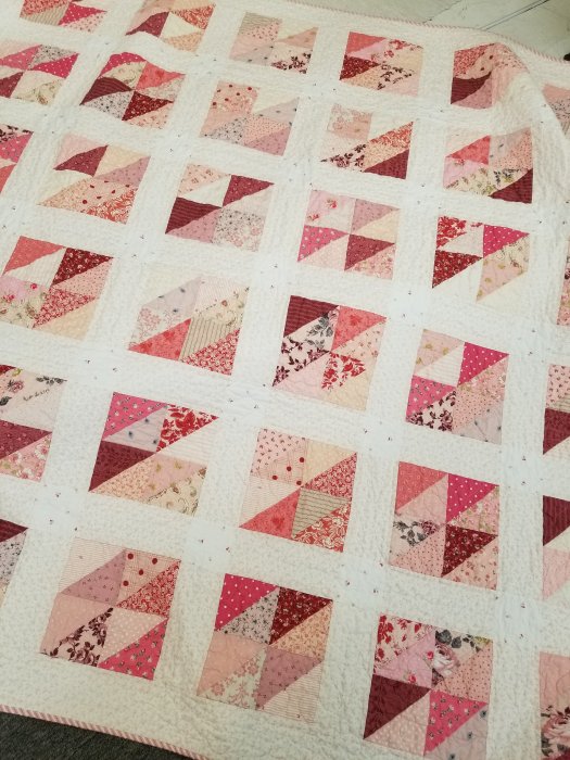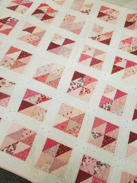 we absolutely love a good scrappy quilt…i truly believe the more prints you have the better. it adds to interest and the excitement. we pulled 36 different pink, red, and low volume prints to make up our Countryside Valentine projects. Then paired it with a sweet pink on cream sashing and red on white scattered cornerstone print. the finale is perfect. Sweet, classic, scrappy, cozy and perfect for Valentine’s Day especially but truly any time of year.