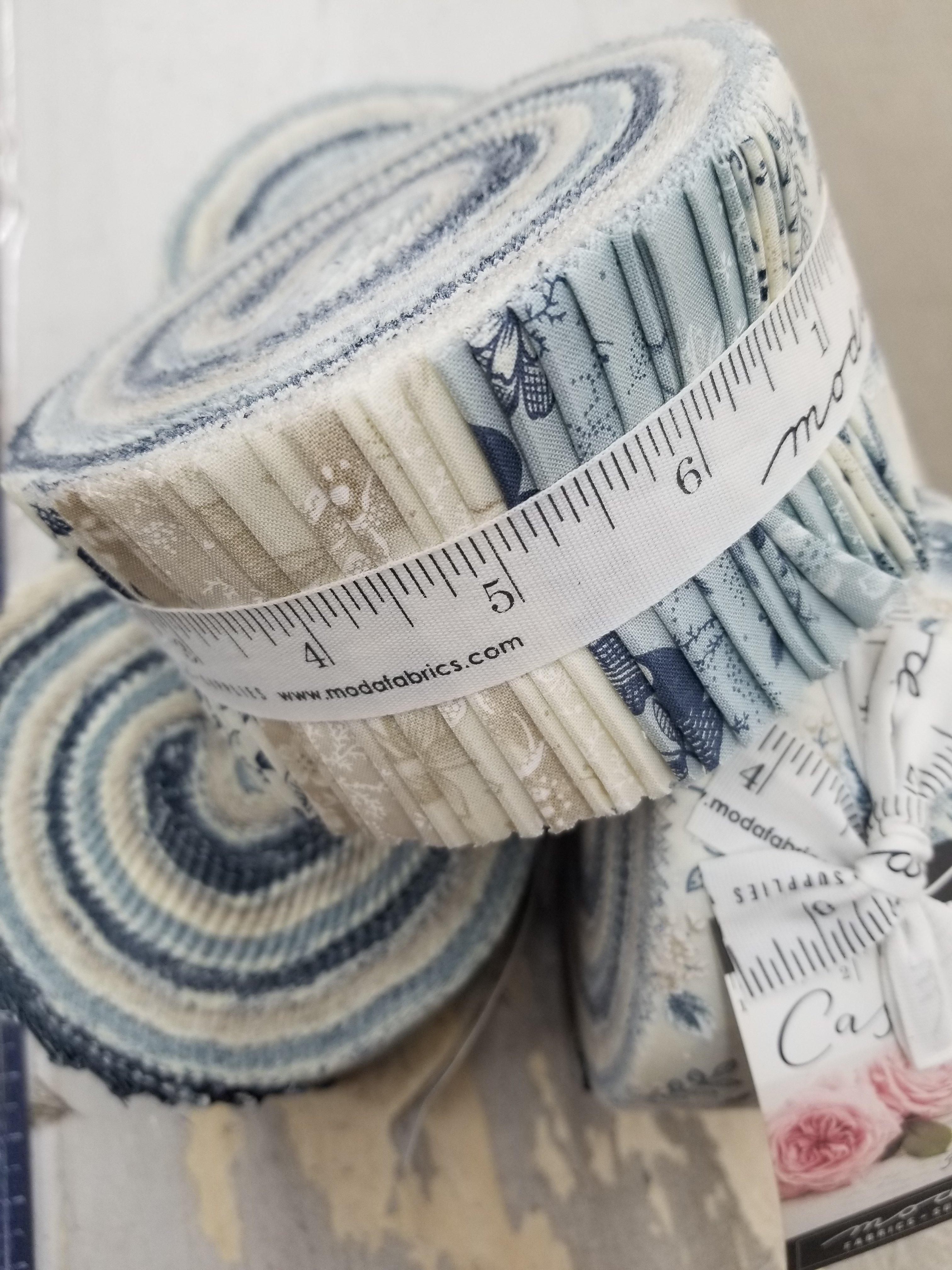 today i thought i would introduce…Cascade by 3 Sisters. 3 Sisters didn’t release a traditional “Christmas” collection this year. Instead they released Cascade. I find Cascade to look more like winter…soft white, shades of blue and dark tan. Pretty, elegant and very reminiscent of winter on Sisters Bay. The cool sand, icy waves, chilly air. A perfect companion collection to Sister Bay if you have bits and pieces left of that fabulous line.