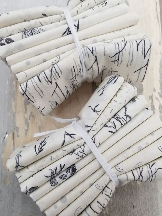 Silhouettes by Holly Taylor. a collection of cream, fog, whisper, shadow, midnight, and charcoal colored prints that are just right for yourself or your next wedding or shower gift for the couple that wants a neutral quilt.