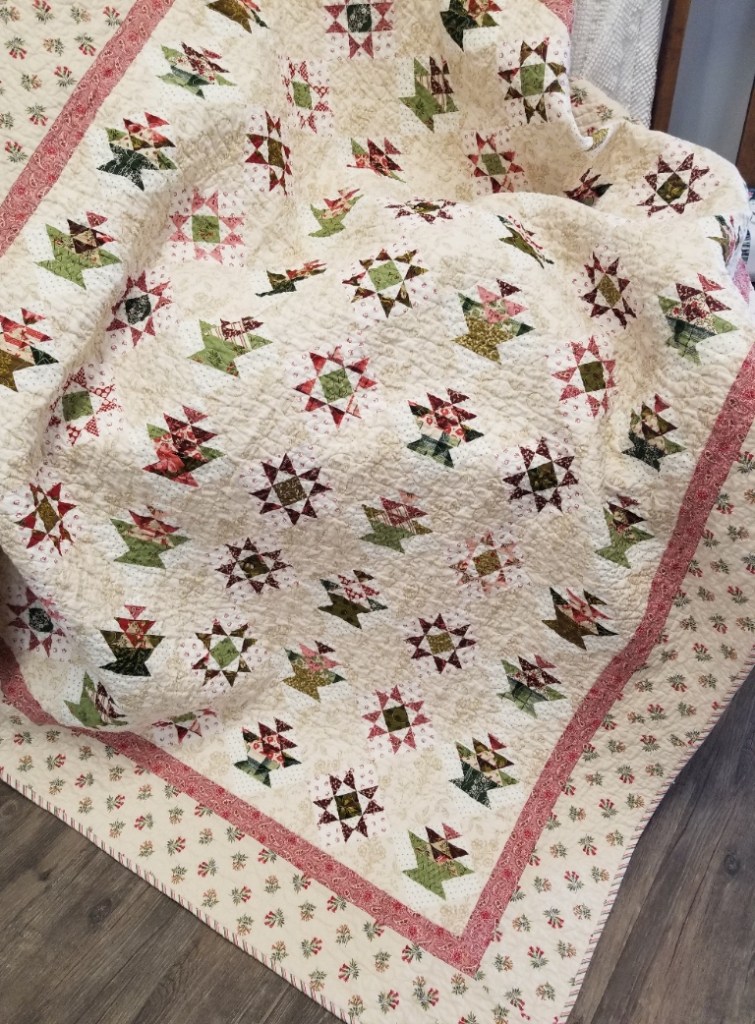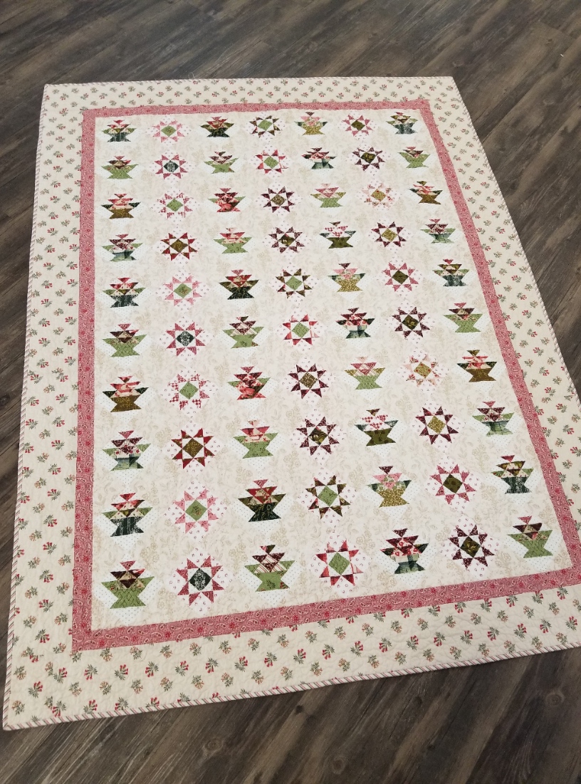 Cherry Chablis features a preprinted center panel and borders…making it quick and easy and perfect for the coming holiday season…it measures 55 x 72 inches and we have a limited number of kits available here.