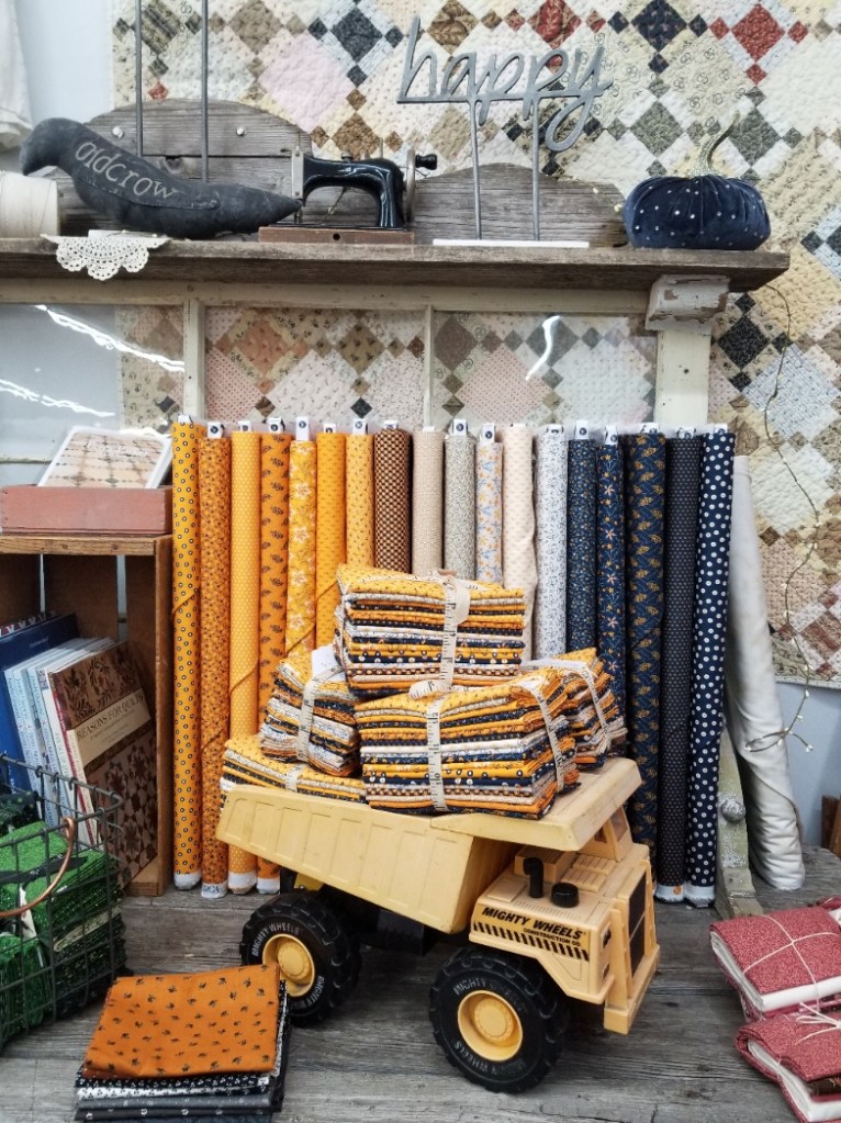 i feel like we’ve been trying to catch-up since our 20 year party (this past June) then July led into the Shop Hop…then we brought home the longarm (tina has taken over the Longarm part…you can find more information here)…and in doing that we now have a lot of totes and baskets full of bags and baskets of–you guessed it–fabric. some of the fabric is ready to be put into kits…just need a background or to print off the pattern or locate the papers and some of the fabric needs to be sorted into scrap packs or cut down into fat quarters. so it looks like we’ll be bringing back some favorites.