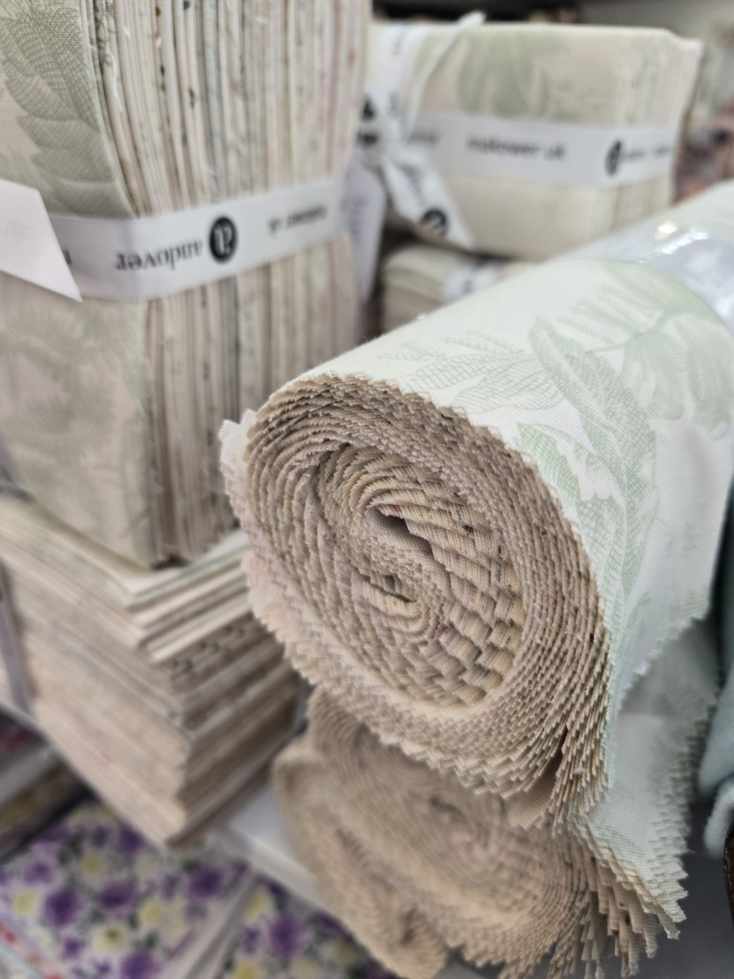 this new collection of soft and subtle prints is just what your low volume cupboard needs…mostly ivory and cream backgrounds with soft purple, green, and blue. these prints are scrumptious…reminding me of toasted marshmallows, pie crust, and toasted bread with cinnamon.