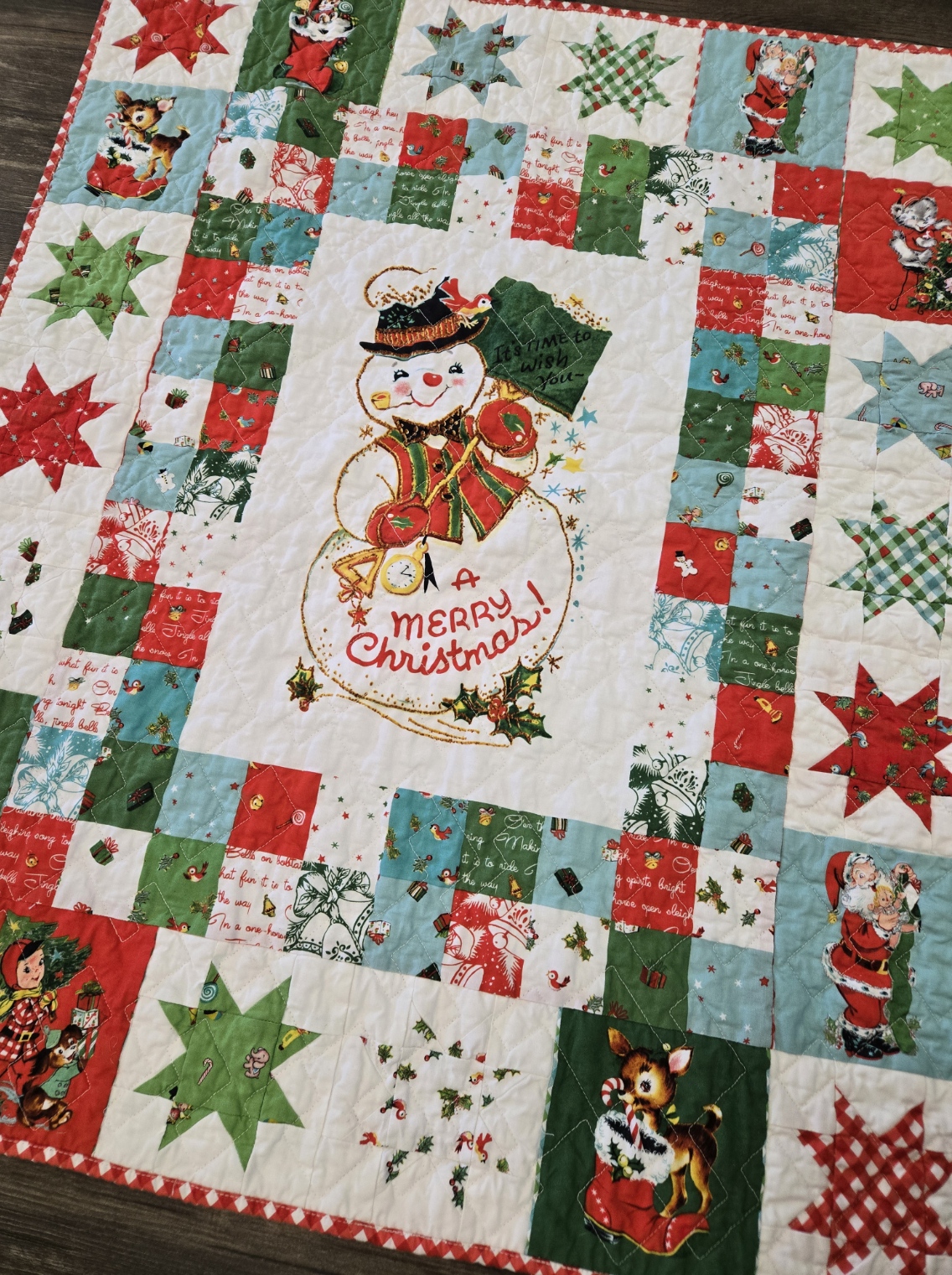 Christmas Vacation uses the Jingle Bells panel along with smaller prints from the collection for the floating stars.