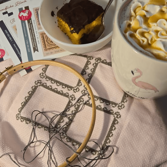 i do have a new cross stitch project featuring Bee in my Bonnet Set V…it is ready to be framed. if you do instagram you’ve spied it…if you don’t check it out the start below.