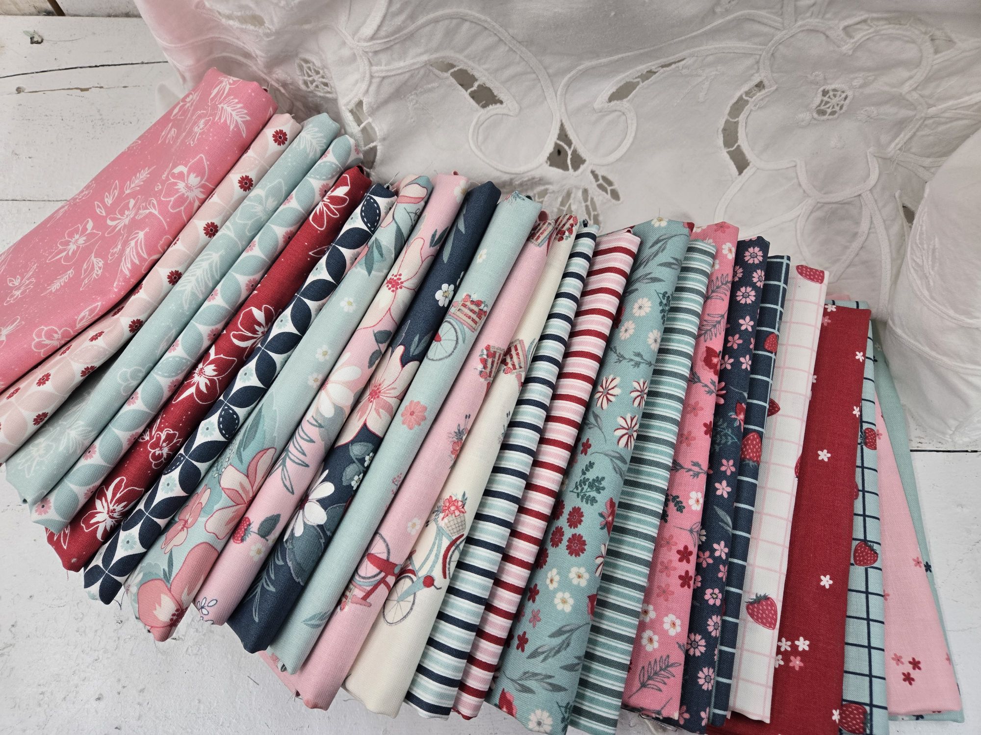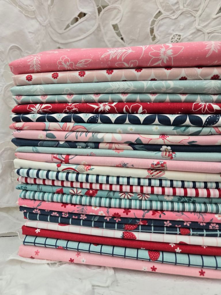 we’ve just unpacked it and it coordinates really well with My Summer House…thinking there may be some collaboration bundles on the horizon. until then…we’ve got the yardage, precuts, and i did up some color bundles (HALF YARD & FQ) if you can’t resist just a smidge of this collection. color palettes include Stargazer…Mint…Frosting and Ballerina…Peony, Red, & Sand Dollar.