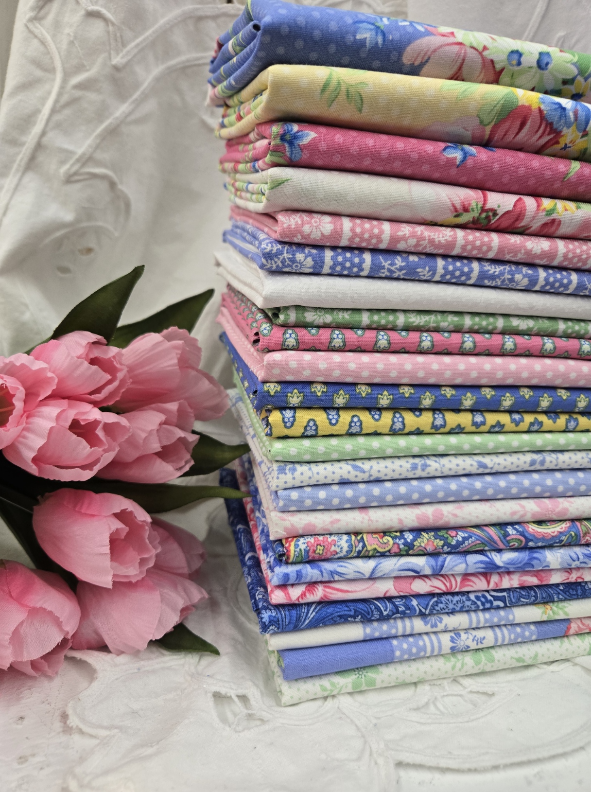 April’s Garden…a celebration of 50 years of April Cornell. This collection is reminiscent of her floral dress, napkins, and towels. A more saturated palette featuring her signature shades of yellow, pink, blue, creamy white, and green.