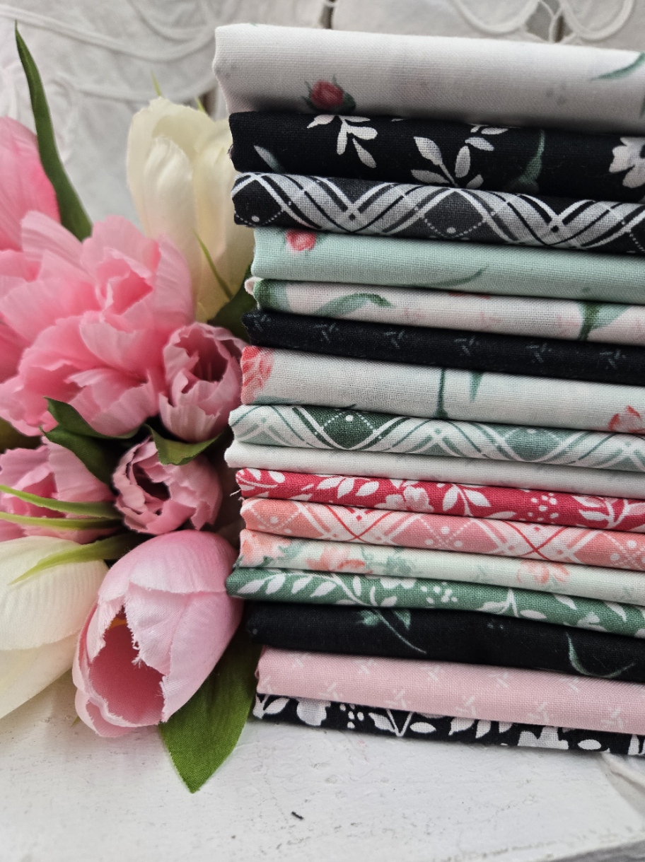 the addition of the back gives it an almost 50s vibe…poodle skirts and saddle shoes! or if the back is too dark, drop it into a Halloween quilt, supplement your 30s, or add it to your grey collection. you can check out the entire garden picnic collection here. we have yardage and precuts along with FQ and HY bundles.