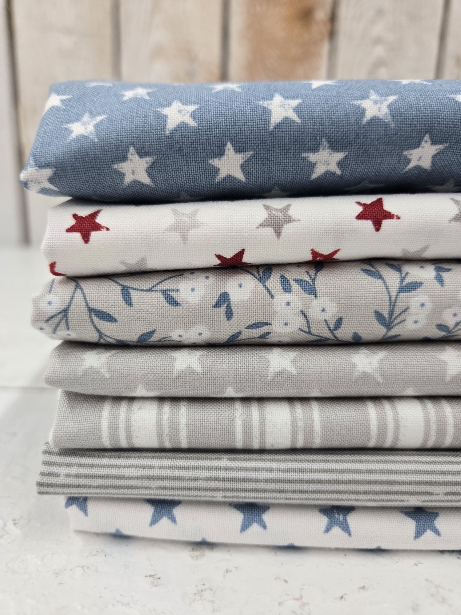 patriotic chintz…a low volume lovely that uses Minick and Simpson prints…they have retired, so it is rekitted with coordinating prints along with some classic Minick and Simpson low volume shirtings. kits can be found here.