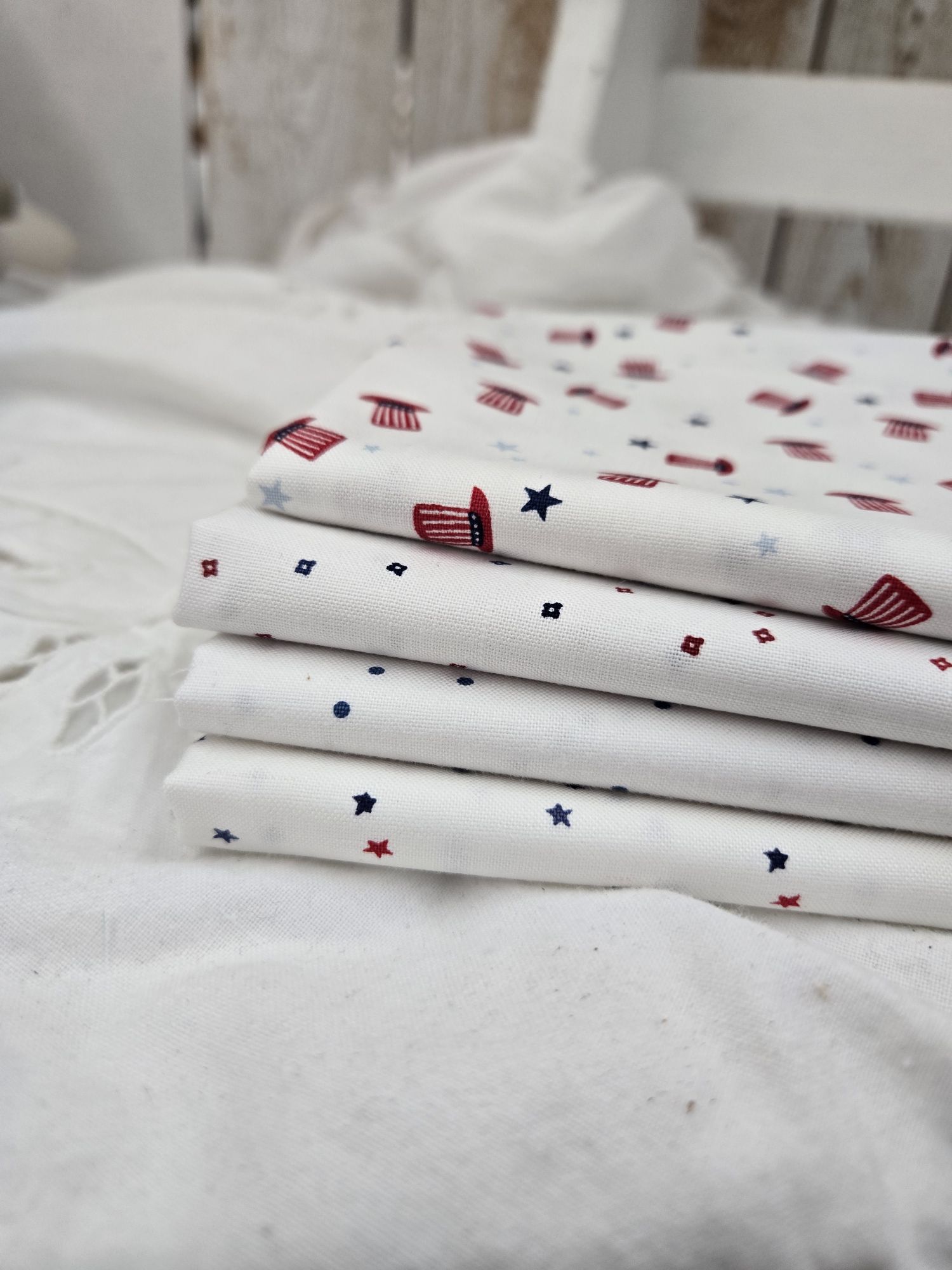 star spangled (pantry pack of 4–half yards)…those little hats…um delightful!!