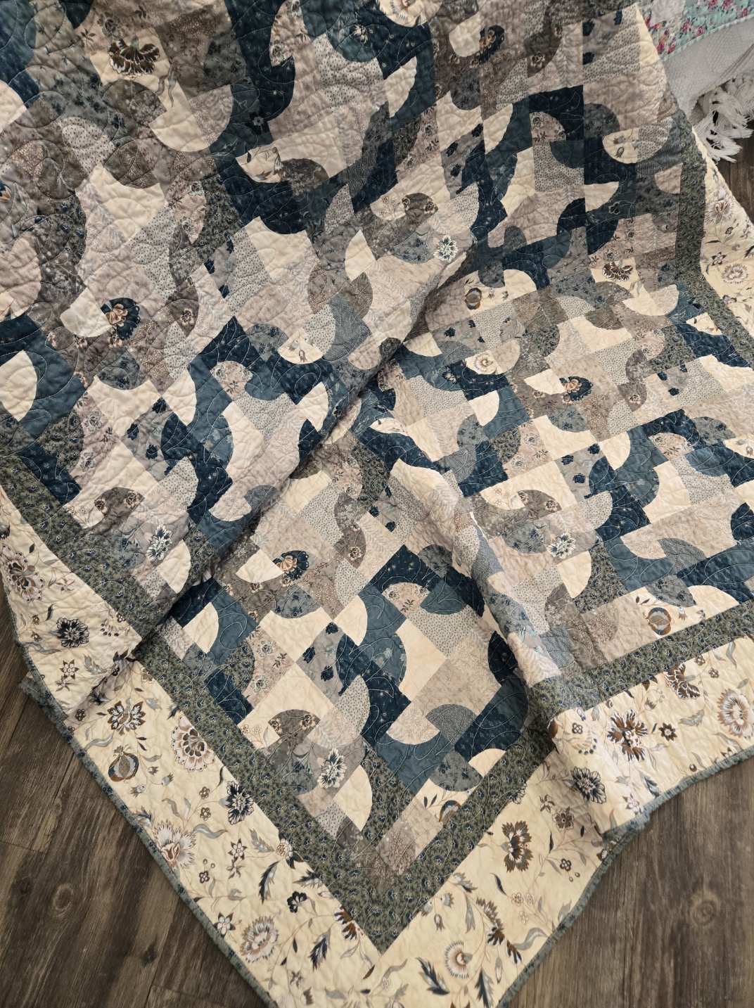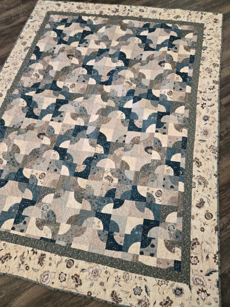 the blue and cream is so cozy for these winter months and since the center is preprinted once you get started it is an easy project to stitch up and get to your longarmer. tina stitched it using the twizzle design…which i love!
