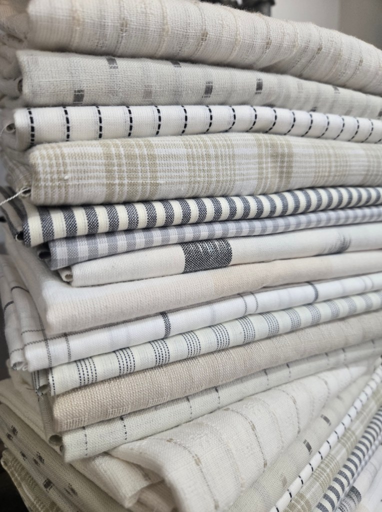 anyways…today i thought i would pop in and introduce a new bundle. we generally don’t have much for geometric/masculine fabrics. we love flowers and pink. however, yesterday i was rearranging the grey section by beachy and after seeing all these lovely wovens that are just hanging out there. i started stacking them and a most wonderful bundle appeared.