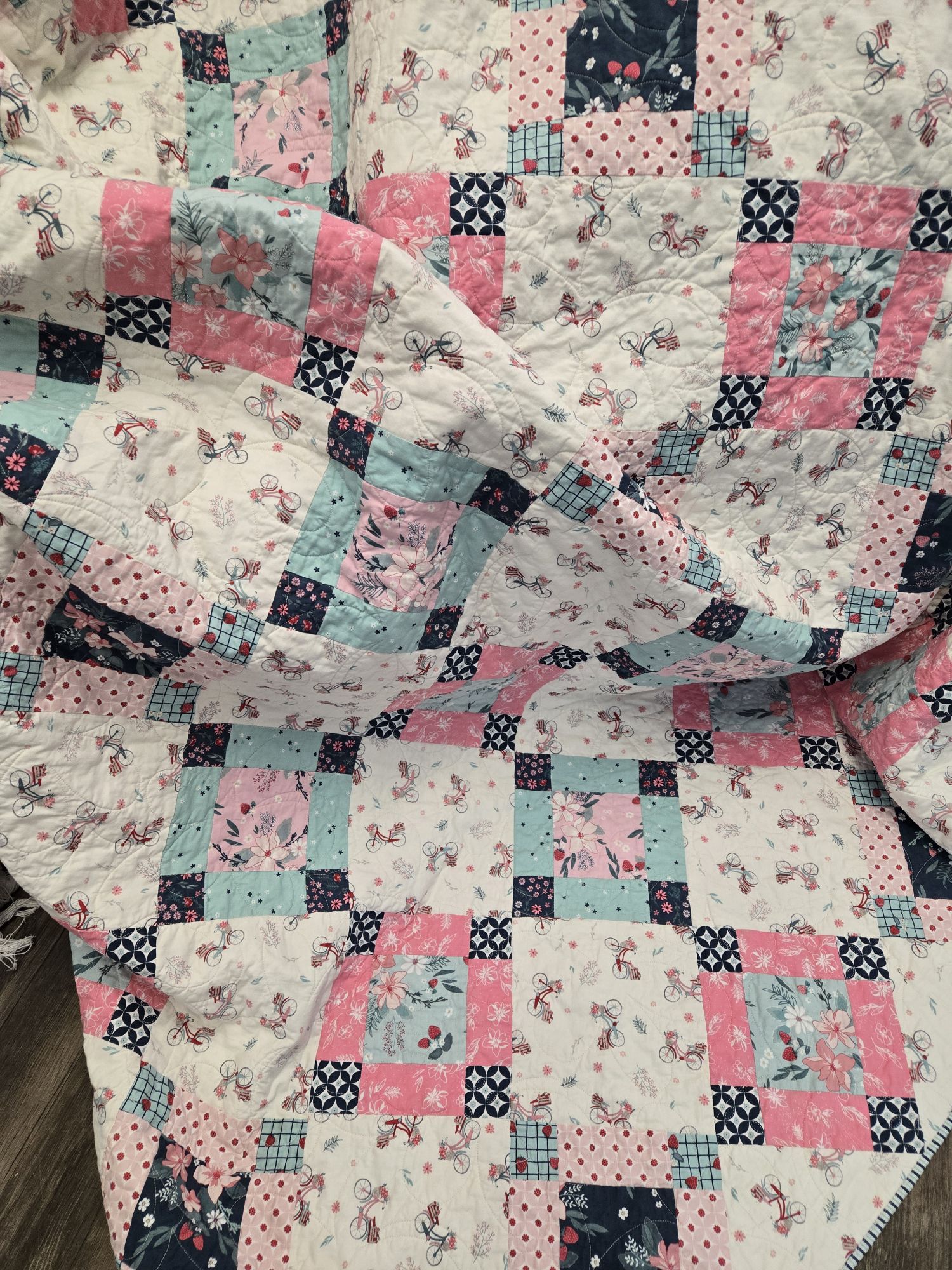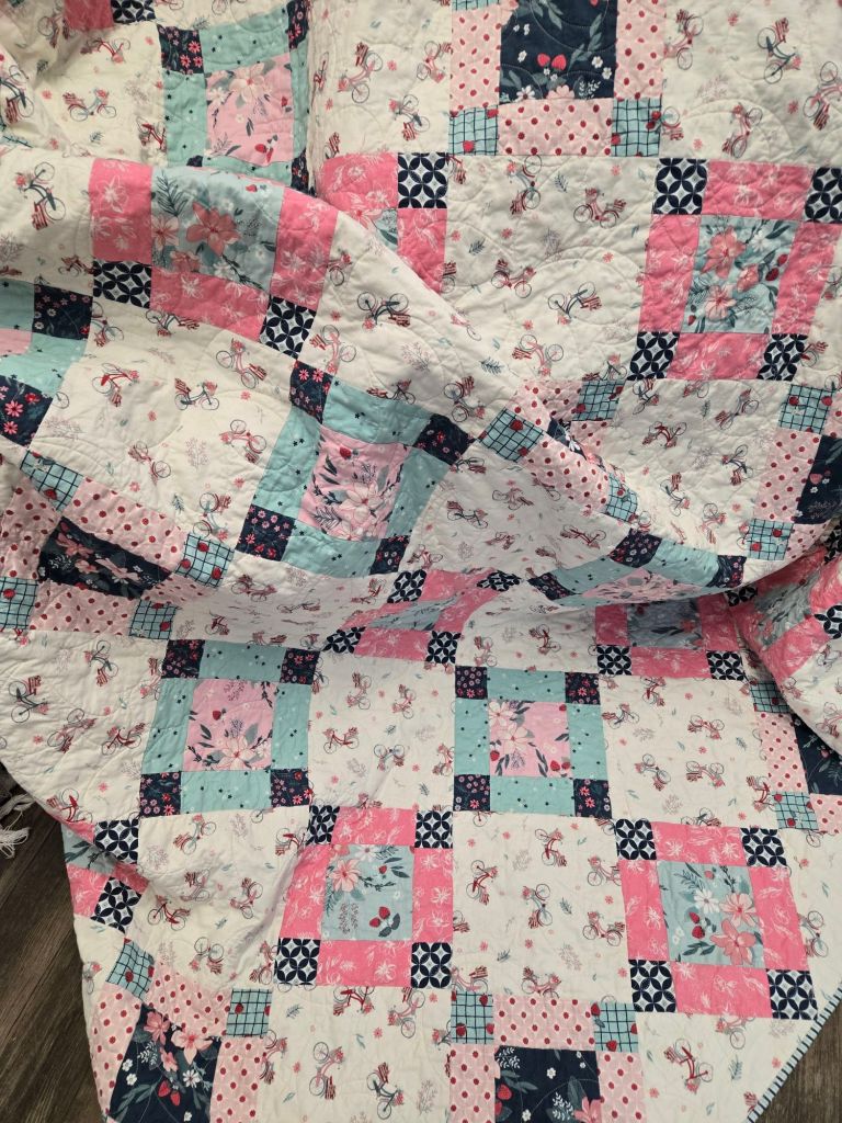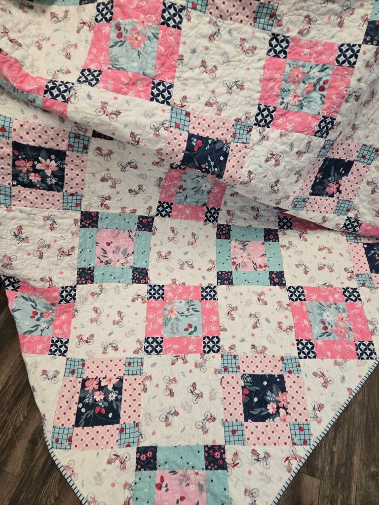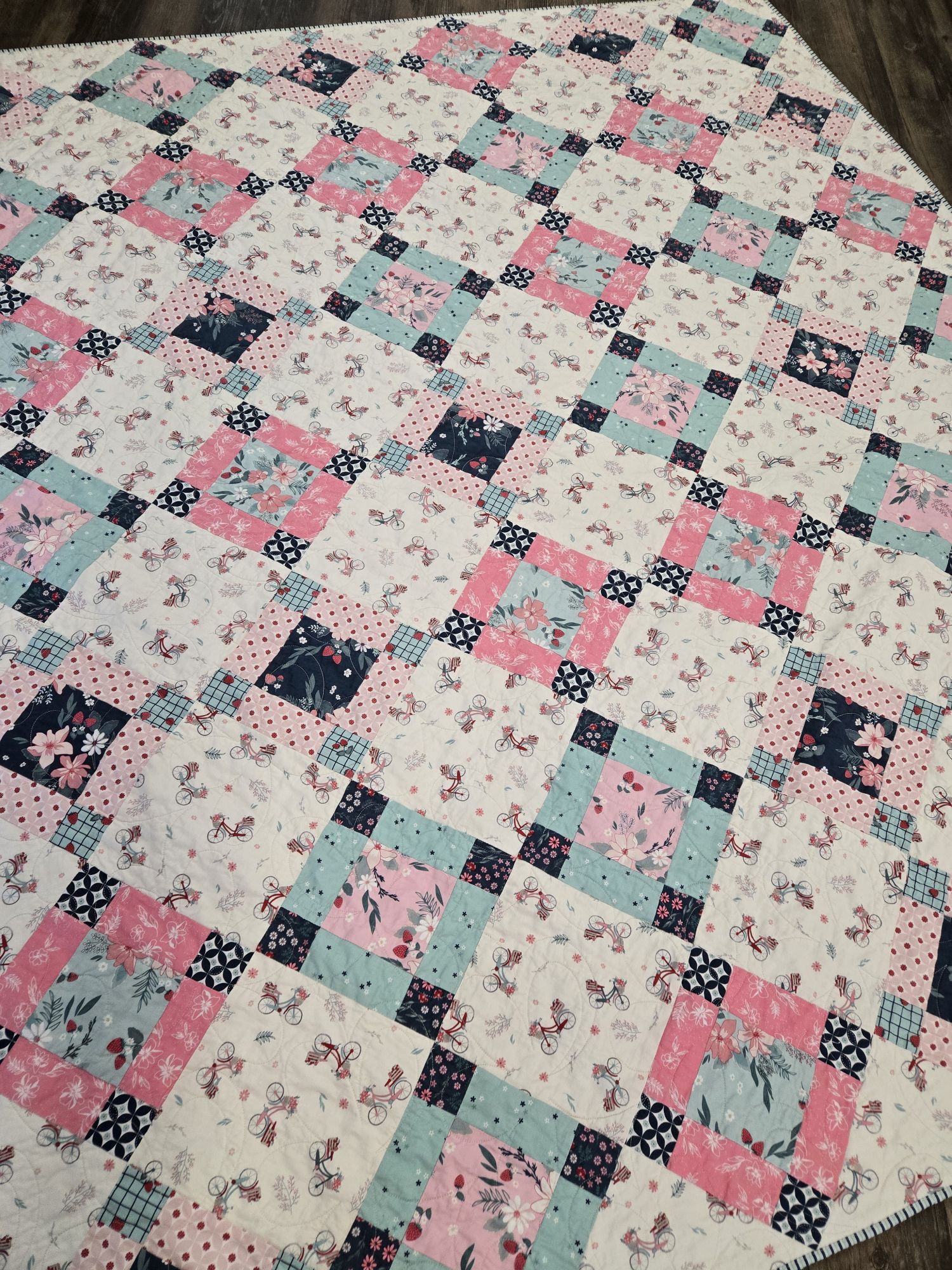 our first project features Berry Market…and we chose the fun and fresh bicycle print for the alternating squares and setting triangles. i LOVE this quilt…the bicycles remind me so much of spring!