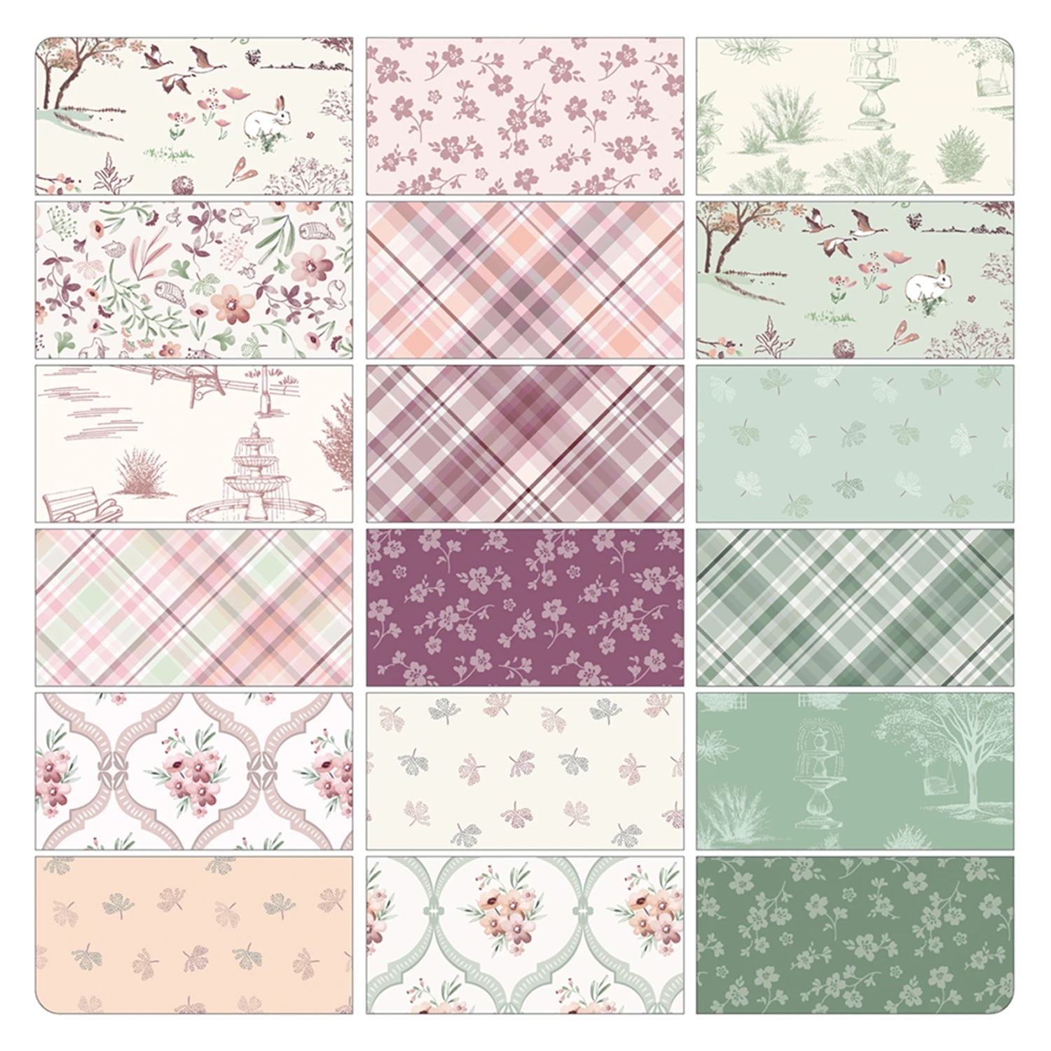 Sweet Meadow…a collection filled with small and medium prints including pretty little florals, toiles, plaids, and trellis prints. the color palette of mauve, apricot, sage, pink, and cream brings to mind sweet spring days, gentle breezes, and lace curtains.