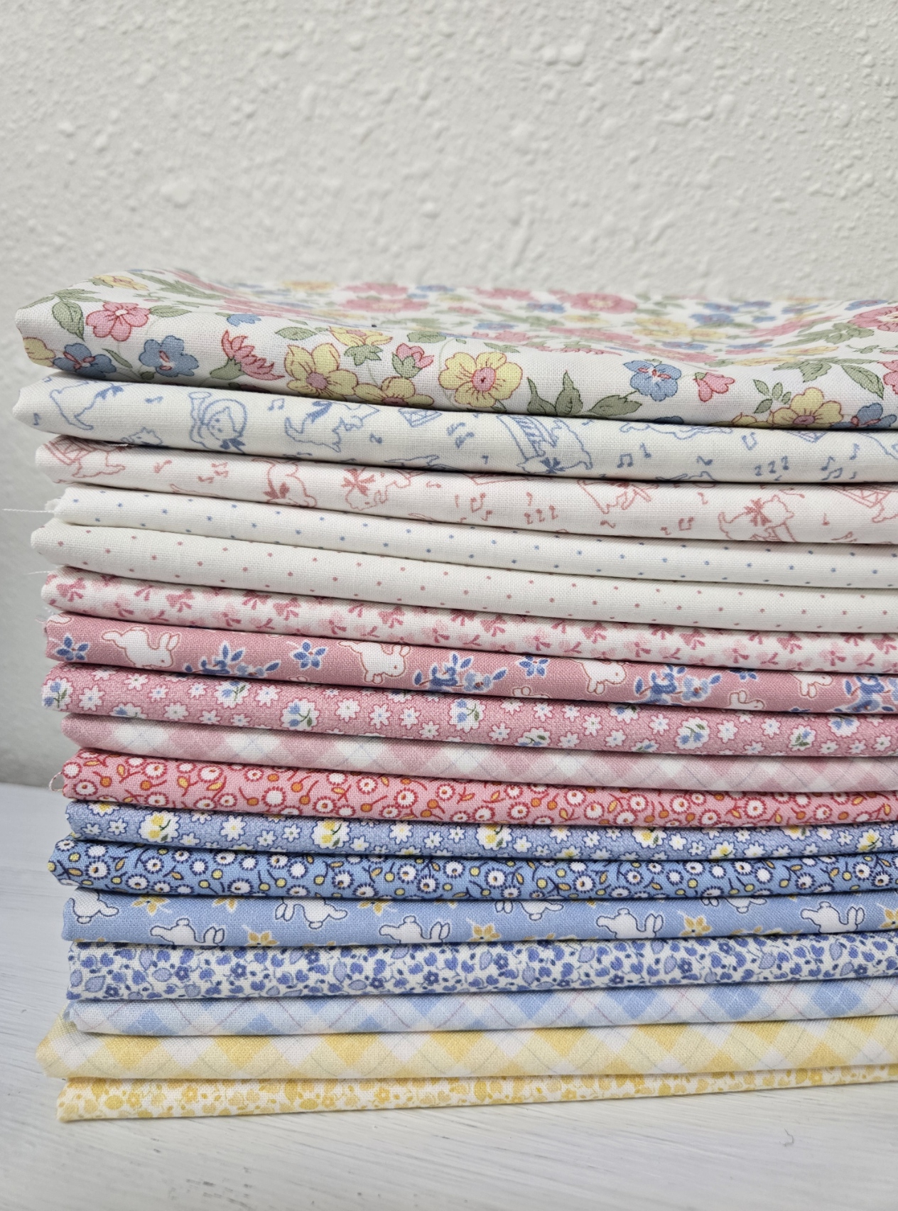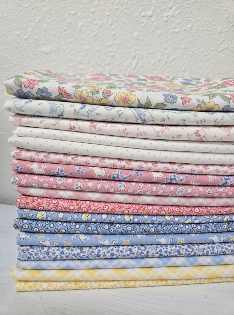 i thought i would take a moment to drop in with our newest 30s reproduction collection. the last 30s collection of Judie’s that arrived was her Goes Bold collection which certainly was bold. this collection…Rock My Baby…is gentle and sweet and features baby pink, baby blue, and yellow with coordinating backgrounds featuring dots. absolutely perfect for a new baby…or add to your 30s stash. i couldn’t wait to add these to mine!!